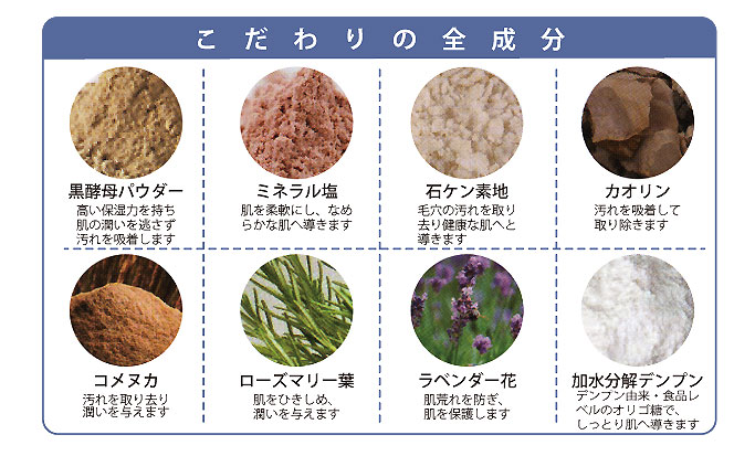 黒酵母・天然ミネラル塩・カオリンで汚れを吸着して